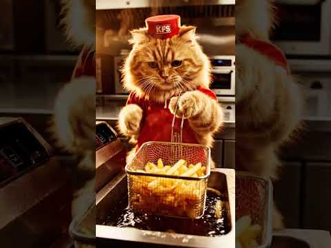 AI | Fluffy Cat Frying French Fries in a KFS Uniform β Must Watch! ππ±