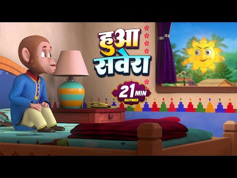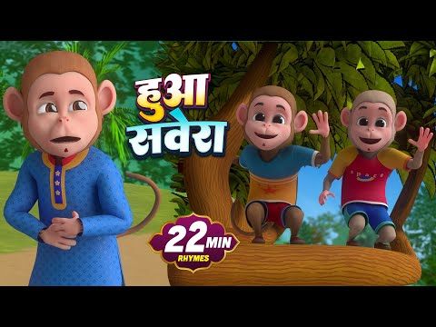 Huaa Savera Bandar Jaga - 20 Minutes 3D Nursery Rhymes | рд╣реБрдЖ рд╕рд╡реЗрд░рд╛ рдмрдВрджрд░ рдЬрд╛рдЧрд╛ | Hindi Kids For Child