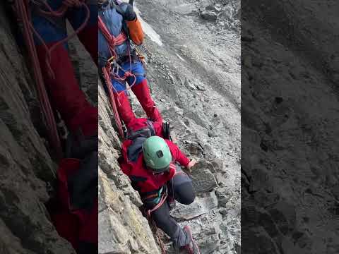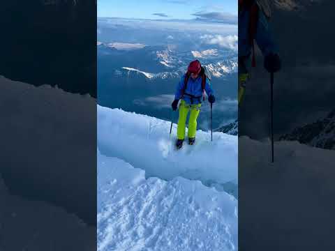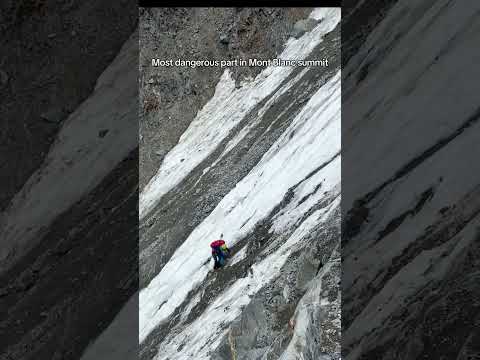 Summit on Mont Blanc through Grand Couloir with falling rocks #montains #alps #summit