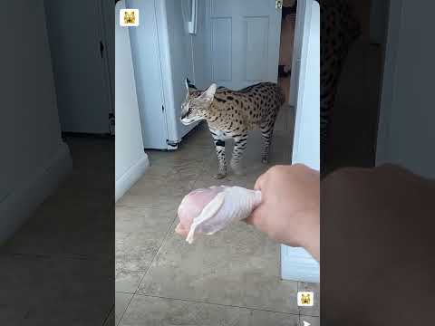 Savannah Cat Aggressively Bites🍗 #shorts #cat #savannah #catvideos