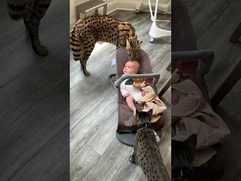 Serval + Savannah Cat + 1 Month old child #serval #cat #shorts