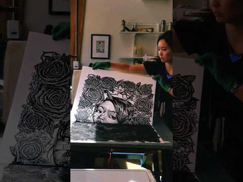 Printing of ‘Behind the Leaves’ Large Linocut Print #art #linocut #linoprint