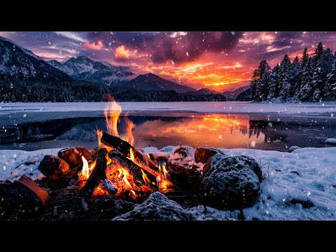Cozy Bonfire by the Frozen Lake π₯ Tranquil Fire Sounds for Sleep & Relaxation