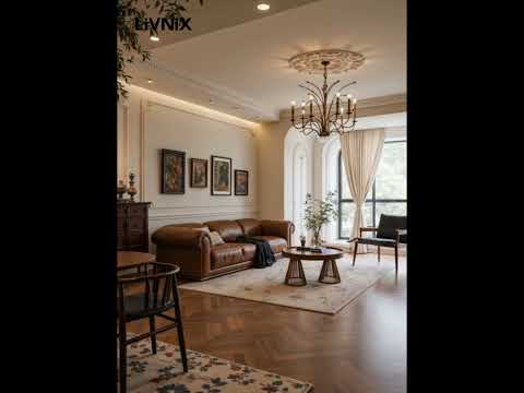 Brown Leather Sofa & Grand Chandelier: A Stylish Home Space