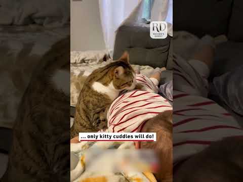 Adorable Cat Hugs Crying Kid