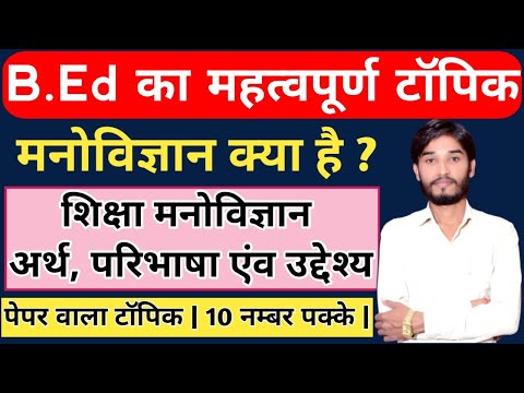 B.Ed | मनोविज्ञान क्या है ? शिक्षा मनोविज्ञान का अर्थ, परिभाषा, उद्देश्य एंव क्षेत्र | BY - S.P. SIR