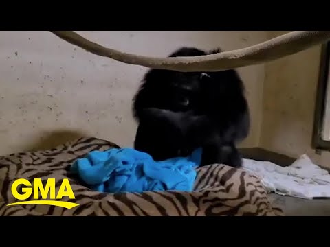 Mom and baby chimpanzee reunite after complications at birth in emotional video | GMA