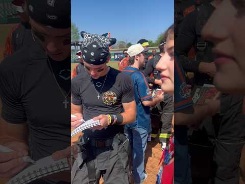 Had to embarrass Mac again with Peanut from the Firefighters #bananaball #dadsgotodad #embarrassing