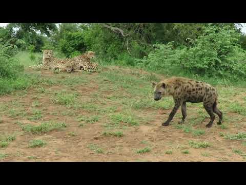 Elephant vs cheetah and hyena in South Africa, kruger Park