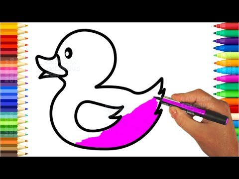 Learn Colors for Kids with Rubber Duck Coloring Book - How to Draw Cute Duck Toy for Baby