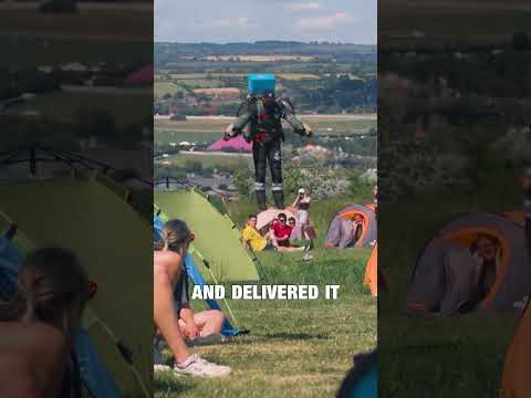 Viral: Dominos Delivery Boy Spotted Flying Over UK's Glastonbury Wearing Jetpack | ET Now #shorts