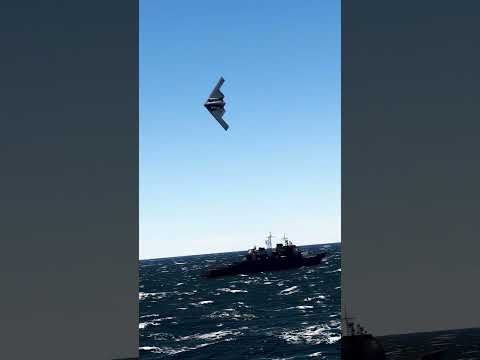 IRAN A B-2 Spirit stealth bomber flies by a US Carrier in the Persian Gulf to raise troop morale