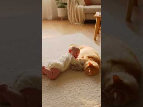 Cute Baby Laughing With Fluffy Cat! 🍼🐈