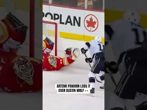 Panarin LOBS puck over Dustin Wolf 😂😲 #hockey #nhl
