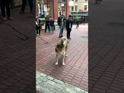 Husky joins in on the street singing!