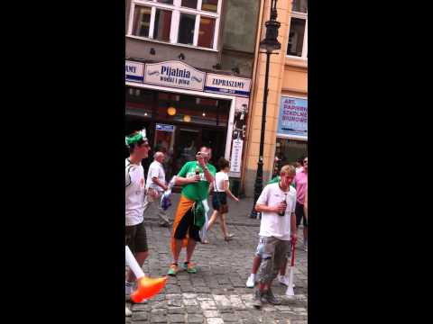 irish fan busking in poznan before ireland v italy match