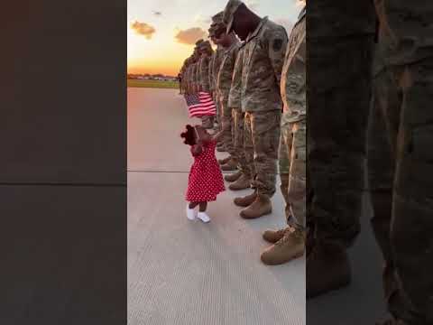 “Wait for the moment she says ‘MY DADDY’ 😭 #military #babyshorts #army #militarypower #baby #cute