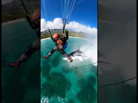 Shark Jumps Out of the Ocean to Attack Paraglider 😱 (INSANE CLOSE CALL) #shorts