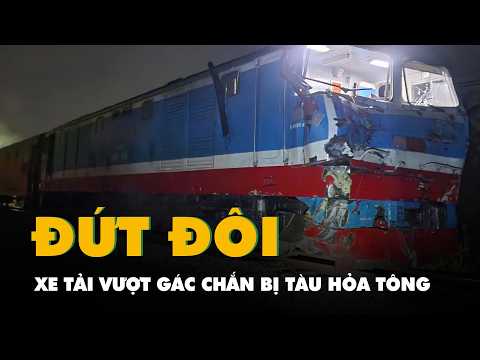 Video xe tải vượt gác chắn mắc kẹt ở đường ray, bị tàu hỏa tông đứt đôi