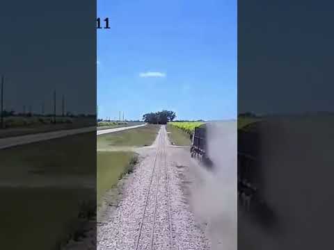 Xe tải tông gãy gác chắn, vượt qua đường sắt khi đoàn tàu hỏa đang lao tới #shorts