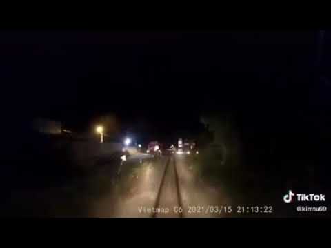 Khoảnh khắc tàu hỏa SE21 tông vào đuôi xe container tại đường ngang dân sinh ở ga xe lửa Cây Cầy.