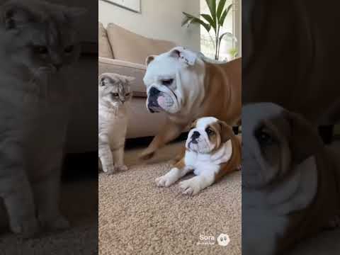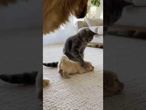 Acting tough until dad walks in #catdog #funnyanimals #petshorts