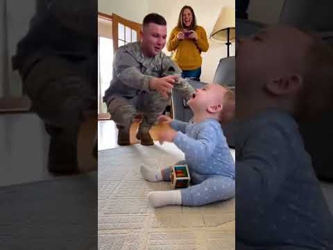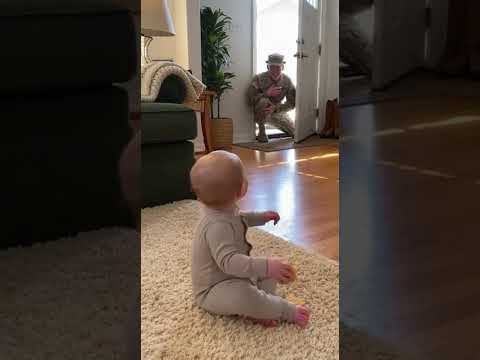 Baby Hears the Door… Then FREEZES 😭🪖