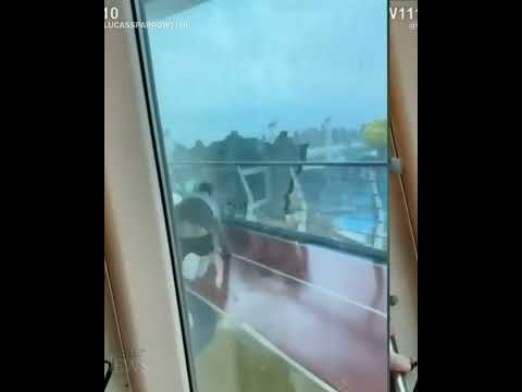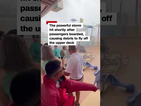 Watch cruise passengers flee flying lounge chairs, debris as storm hits