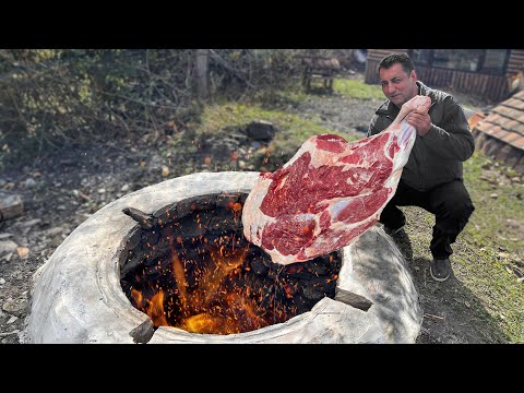 Huge Beef Leg weighing 20 KG! Meat Dish For The Whole Village