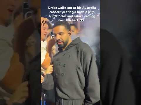 Drake walks out at his Australia concert wearing a hoodie with bullet holes #drake #rap #australia