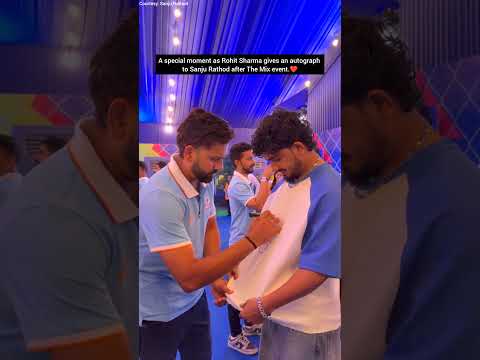 A special moment as Rohit Sharma gives an autograph to Sanju Rathod after The Mix event. 💙🥹