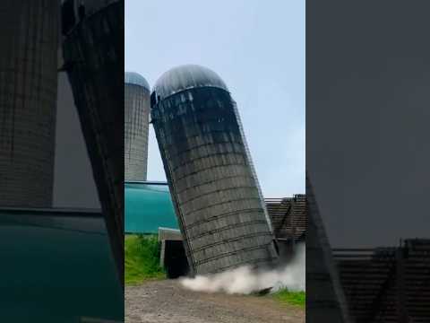 Close-Up of Dangerous Silo Demolition Failure: Unforeseen Risks #demolition #fail
