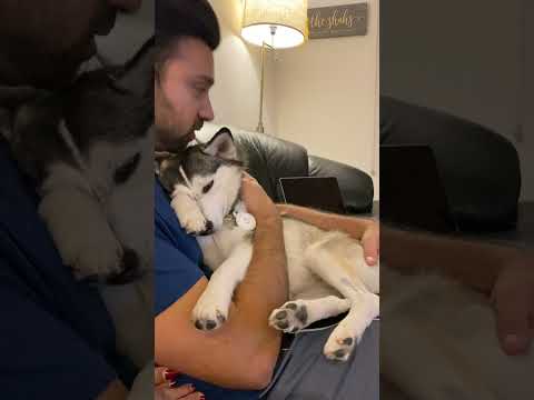 Sapphie the pomsky treats daddy nicely