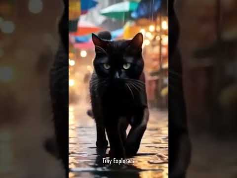 Black cat walking alone in the rain #cat #rain #animals #viralcats #funny #kids #cute
