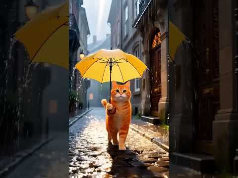 Dreamy Cat Walking Under Rain | The Cutest Nighttime Moment Ever