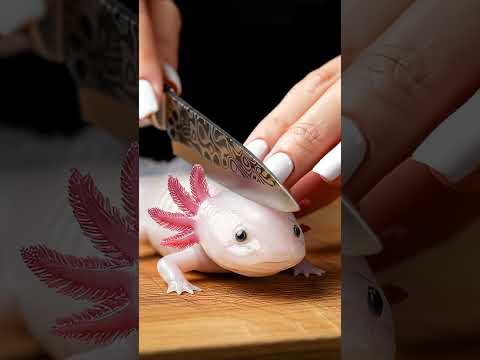 Cutting A Cute Axolotl With Knife