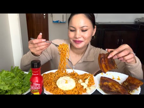 2XSPICY CURRENT NOODLES,JUICY PORK FRY,SUNNY SIDE EGG WITH SPICY SAUCE😋@gurungfamily4715