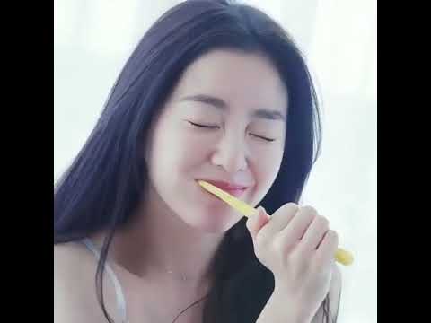 Red Velvet Irene brushing her teeth for a photoshoot