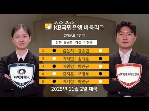 2025/11/02: 원익 vs 영림프라임창호ㅣ★1국: 김은지 vs 강승민★ 2025-2026 KB국민은행 바둑리그 2R 4G