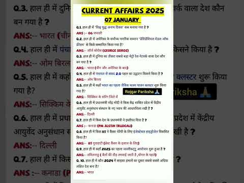 7 जनवरी 2025 के करंट अफेयर्स #सामान्यज्ञान2025