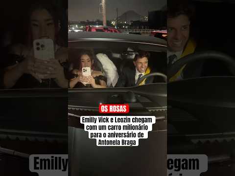 Emilly Vick e Leozin chegam com um carro milionário para o aniversário de Antonela Braga
