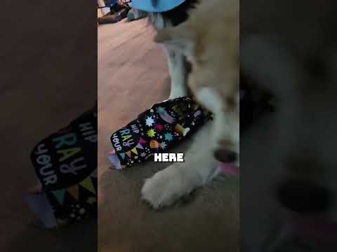 Dog Tries to Open a Mystery Birthday Gift! #husky #funnyanimal #shortsvideo