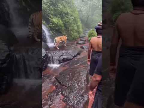 Tiger sitting near the Sabarimala waterfall… everyone just stopped and watched.#ayyappa #sabarimala