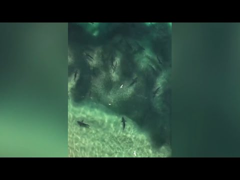 Swarm of sharks spotted near swimmers in Byron Bay