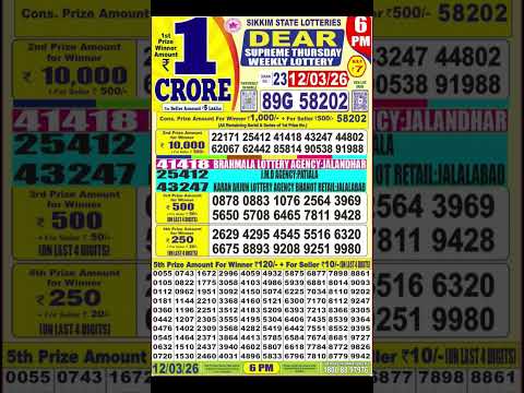 Sikkim State lotteries Dear Supreme Thursday weekly lottery 12/03/26 6pm #sikkimlotteryresult