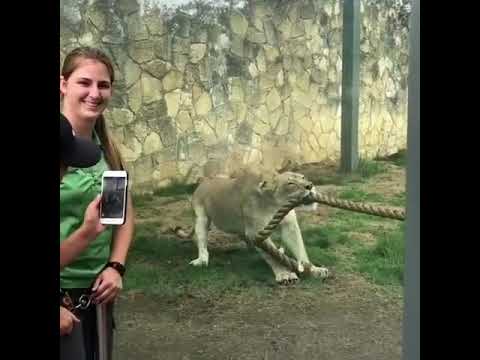 Tug of war with a lion
