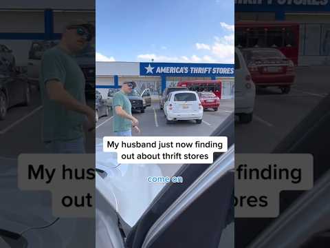My husband just now finding out about thrift stores #husbandreacts #funny #shopping #couple #thrift