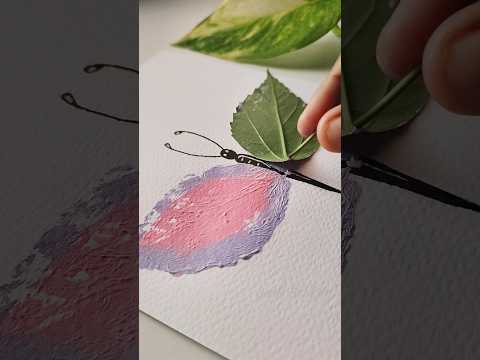 Viral butterfly painting with leaf🍃🦋 #art #shorts #painting #pastel #colors
