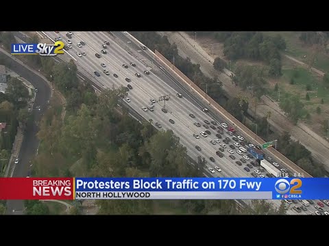 Protesters block part of 101 Freeway near Glendale Avenue