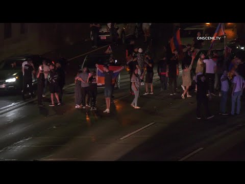 Traffic Flowing Again After Protesters Supporting Armenia Blocked Both Sides Of 101 Freeway